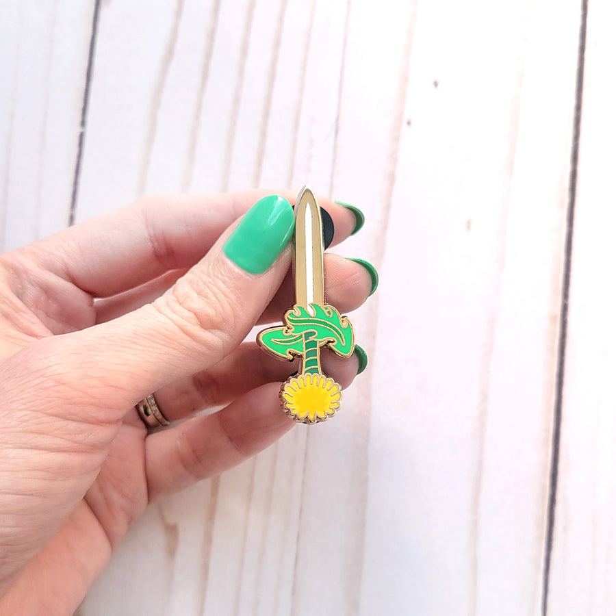 This dagger pin is part of the Blooming Blades collection. These enamel pins come with an item card so you can use the Dagger in your 5th Edition D&D games.