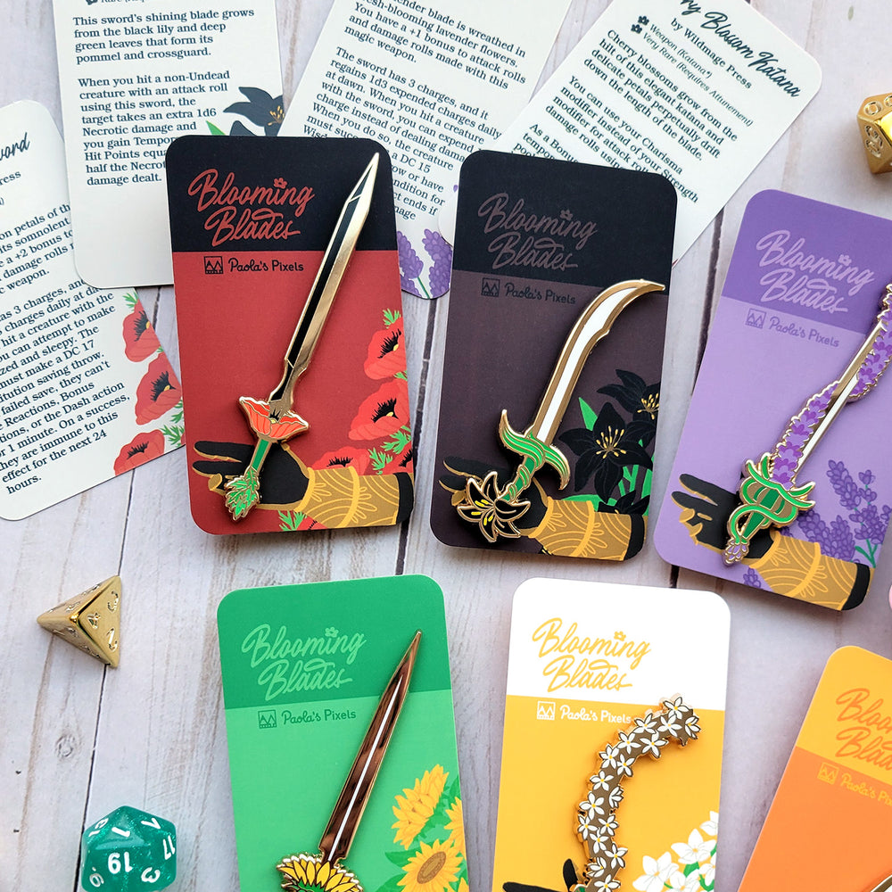 This enamel pin collection come with an item card for each design so you can use the swords in your 5th Edition D&D games.