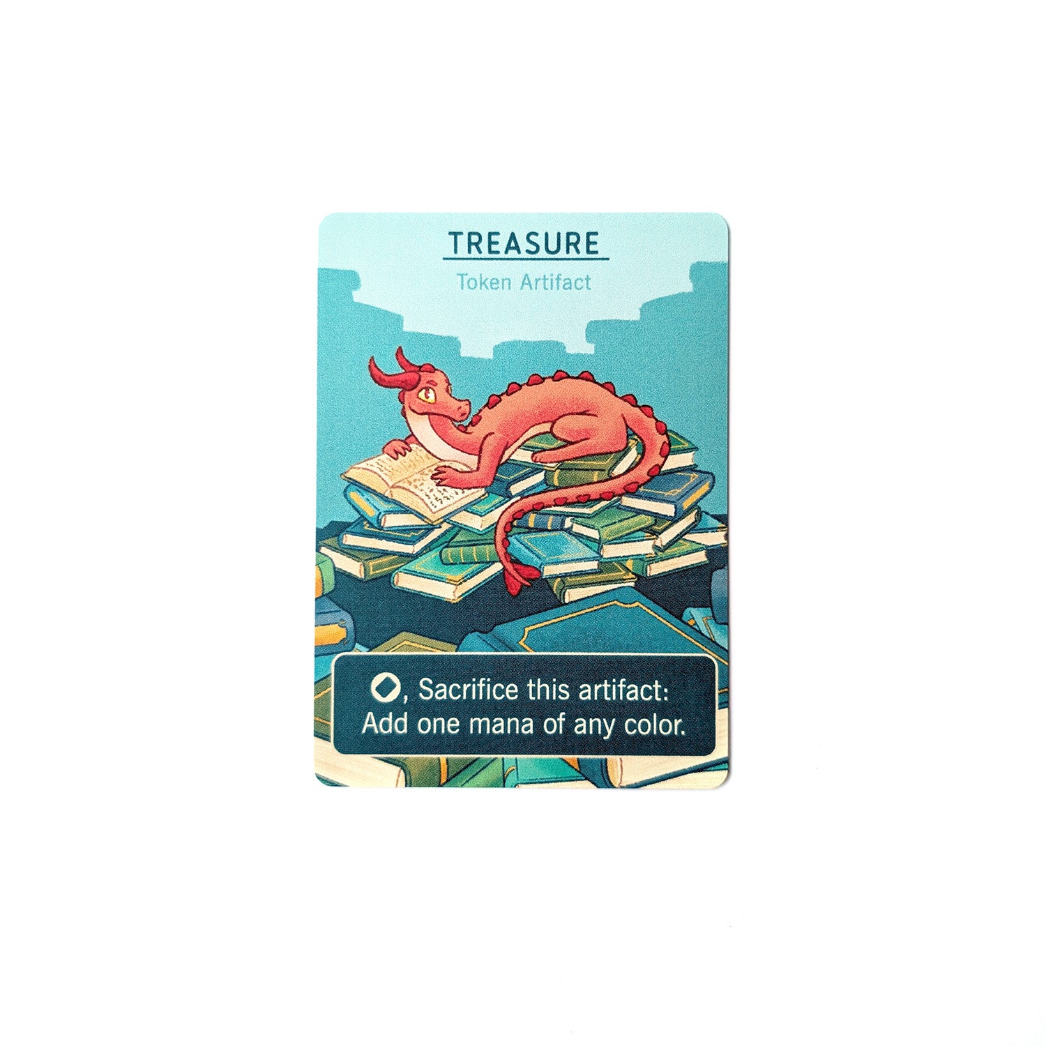 I am designing some cute versions of the tokens I use the most. This is a Treasure token inspired by my dragon deck.